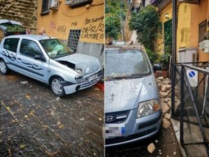Chiuse le Rampe Sant’Antonio a Posillipo per incidente: auto si schianta, muro crolla sulle case di sotto