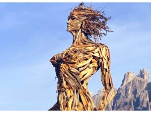 Il significato della scultura di legno alta sette metri che si trova nel cuore delle Dolomiti