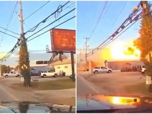 Lo spaventoso incidente aereo all'aeroporto di Louisville, in Kentucky, è stato ripreso in un video girato da un'automobilista: si vede il velivolo travolgere prima i cavi dell'alta tensione e poi un edificio prendendo subito fuoco.
