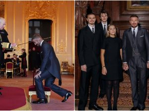La famiglia Beckham al completo è stata ricevuta nel castello di Windsor affinché Re Carlo potesse conferire a David l’ambito titolo di “cavaliere”. Presenti l’ex calciatore, la moglie Victoria e i figli Romeo, Cruz e Harper. Unico assente Brooklyn, la cui mancata presenza conferma la persistenza delle tensioni familiari nate tra loro da qualche anno.