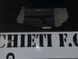 Sassaiola contro il bus del Chieti calcio dopo la partita: assalto nel buio, si indaga su 20 tifosi