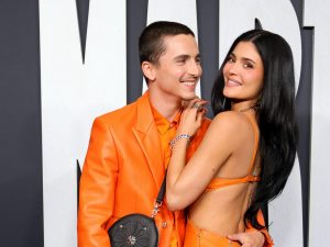 Timothée Chalamet e Kylie Jenner, il look coordinato conferma che sono una coppia (e l’arancione non è casuale)