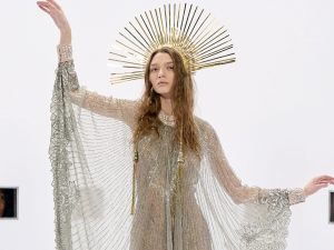 A Parigi va in scena la prima sfilata Couture di Valentino dopo la scomparsa dello stilista. Alessandro Michele ridefinisce lo spazio dello show, rende omaggio non solo al Couturier ma anche a Chiuri e Piccioli, raccontando una bellezza che dialoga con il presente.